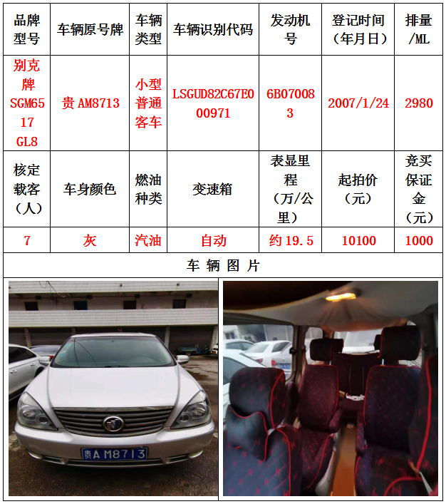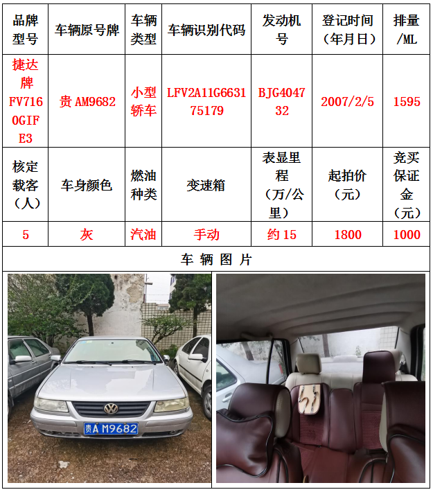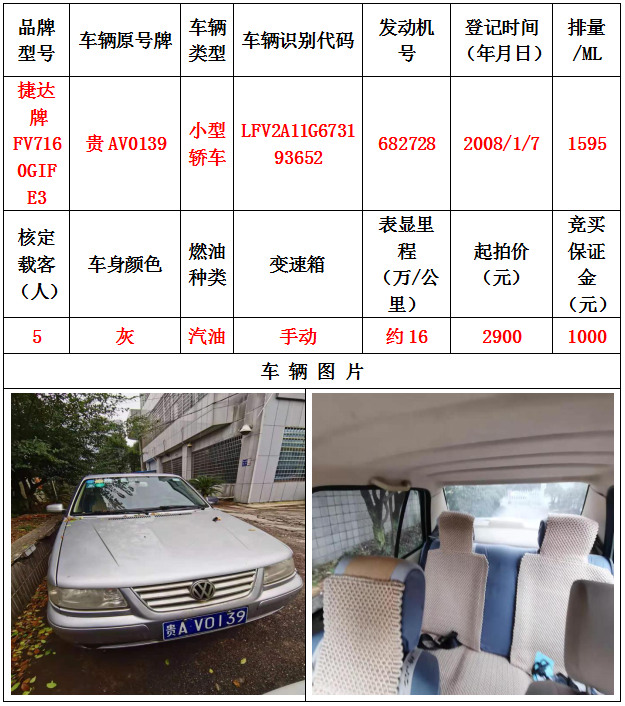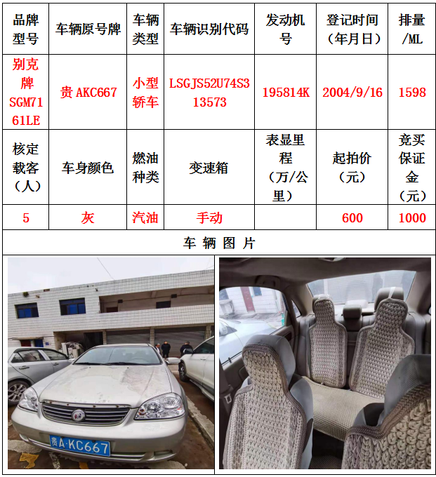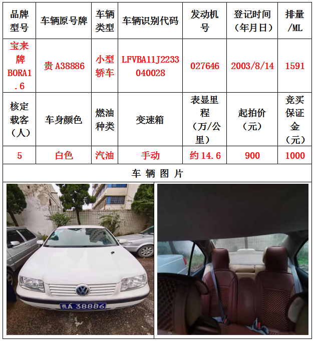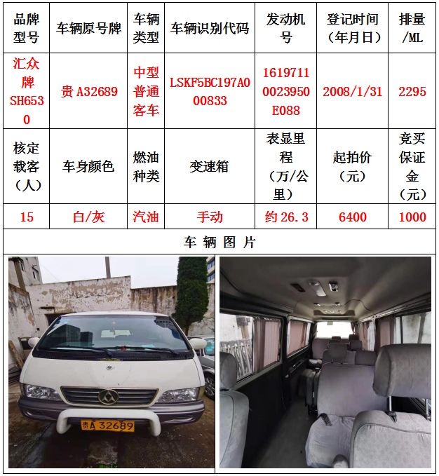 本次拍賣會拍賣的車輛共計(jì)10輛車,分別為帕薩特牌SVWZ183LJI小型轎車一輛、匯眾牌SH6530中型普通客車一輛、別克牌SGM6517小型普通客車一輛、別克牌SGM7161LE小型轎車一輛、寶來牌BORA1.6小型轎車一輛、捷達(dá)牌FV7160GiFE3小型轎車五輛(詳情見下文),為打包整體拍賣,不作拆分,整體起拍價(jià):33900元,且只對標(biāo)的現(xiàn)狀進(jìn)行拍賣,不作任何質(zhì)量擔(dān)保。