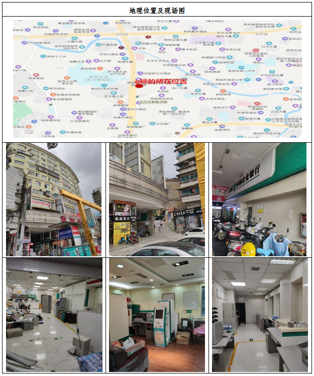 標的位于貴陽市云巖區(qū)香獅路198、196號新里程商城1號樓F1層203號;該標的分攤土地使用權面積:98.51㎡ ,總建筑面積:285.72㎡,樓宇總層數(shù):9層,所在樓層:1層,地類用途:商業(yè)用地;土地使用權類型為出讓,土地使用權終止日期為:2053年10月23日,土地所有權為國家所有;建筑結(jié)構:混合結(jié)構;層高:3.3米,建筑用途為商住。