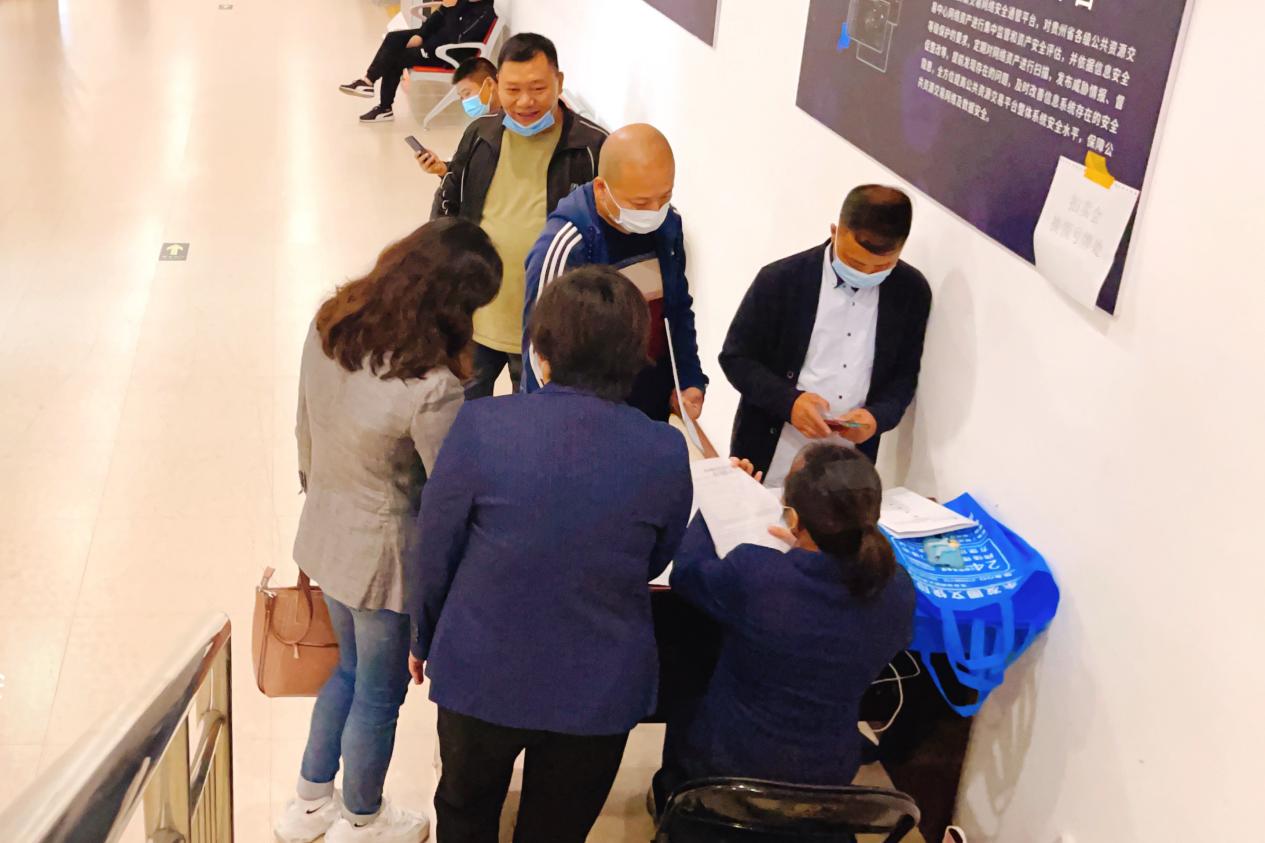 10月13日,翔泓拍賣公司工作人員提前入場進(jìn)行會場布置,在座椅上張貼序號,入場人員按照防疫預(yù)案要求查驗(yàn)“三碼”并依次登記、測量體溫,提醒競買人佩戴口罩、對號并隔位入座。