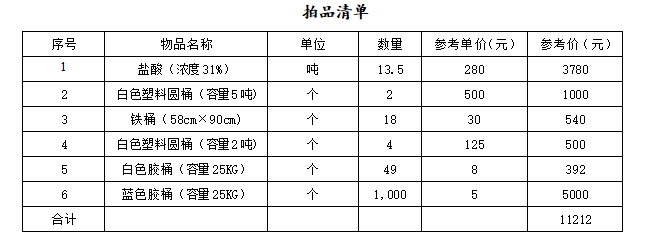 2、拍賣成交后買受人需要到標(biāo)的物所在地提取標(biāo)的物,買受人在提取和運輸鹽酸時,須按照國家法律、法規(guī)、行政規(guī)章制度的相關(guān)標(biāo)準(zhǔn)進(jìn)行提貨和運輸。提取和運輸所有費用由買受人自行承擔(dān)。